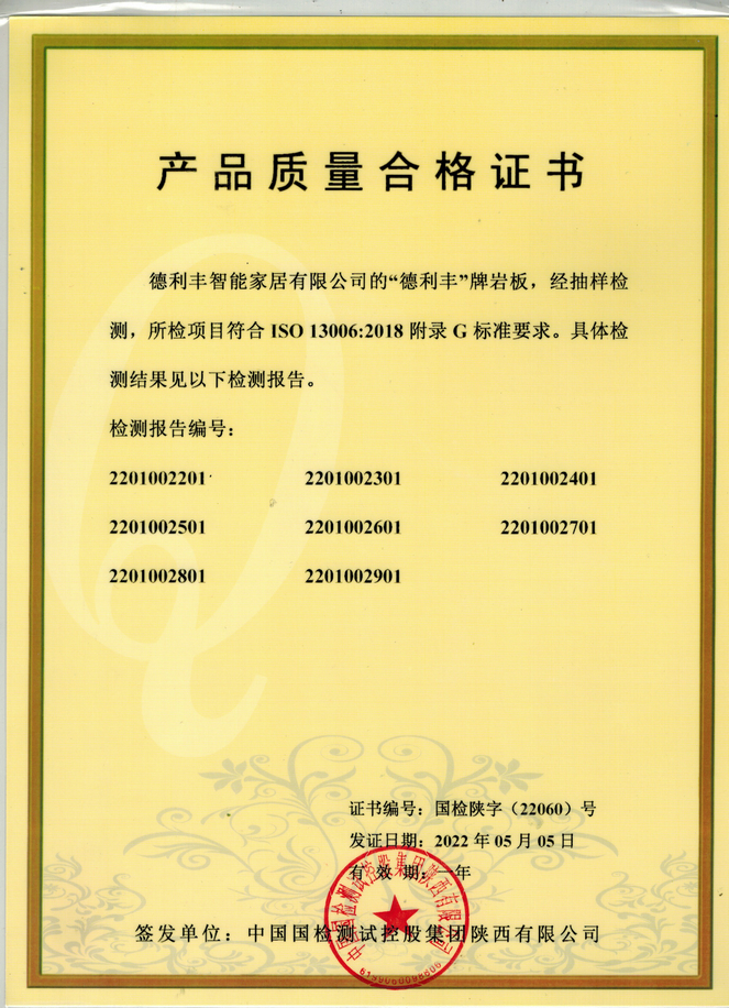 集團(tuán)坐擁30000㎡CBD辦公大樓,50萬㎡智能智造生產(chǎn)基地,1350米綠色巖板生產(chǎn)線;全套進(jìn)口巖板生產(chǎn)設(shè)備,同步超3萬噸位意大利壓機(jī)與16通道高清噴墨打印機(jī)等國際一流專業(yè)設(shè)備。依托R&D中心,從產(chǎn)品原料、生產(chǎn)、加工、儲(chǔ)存運(yùn)輸?shù)拳h(huán)節(jié)皆采用網(wǎng)絡(luò)化、智能化、數(shù)字化監(jiān)控管理系統(tǒng)。產(chǎn)品經(jīng)國家、省、市質(zhì)檢部門抽檢均達(dá)到優(yōu)質(zhì)水平,并通過ISO9001質(zhì)量管理體系認(rèn)證。集團(tuán)的強(qiáng)大生產(chǎn)實(shí)力確保了德利豐巖板高品質(zhì)產(chǎn)能和性能,并帶領(lǐng)德利豐家居走向規(guī)?;咚侔l(fā)展道路。